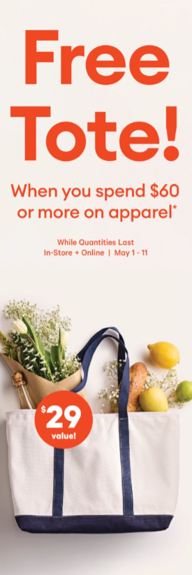 Joe Fresh服饰消费满$60刀,送一个托特包(价值$29)!