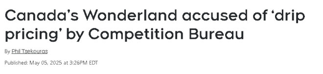 位于大多伦多地区的知名主题公园——加拿大奇幻乐园(Canada’s Wonderland),遭加拿大竞争局指控存在“滴灌式收费”(drip pricing)行为,涉嫌在线上广告中公布“具有误导性”的票价。
