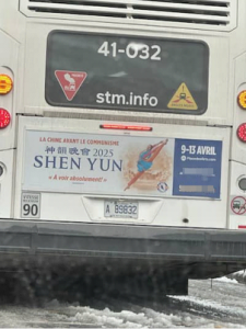 ▲“神韻藝術團”海報張貼在蒙特利爾市交通局(STM)公共汽車上
