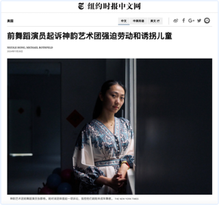 《紐約時報》近期報道指出:“我們的調查顯示,該舞蹈團對其年輕演員進行剝削,而這些演員通常是‘法輪功’學員子弟,‘神韻’給他們的報酬很低甚至根本沒有,卻讓他們按照艱苦日程長時間工作。”