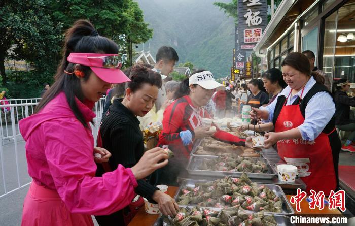 11日上午,跑者享用映秀商户免费提供的“爱心早餐”。记者 安源 摄
