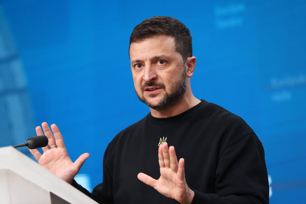 2024年10月17日,在比利时布鲁塞尔,乌克兰总统泽连斯基在欧盟峰会上参加新闻发布会。新华社记者赵丁