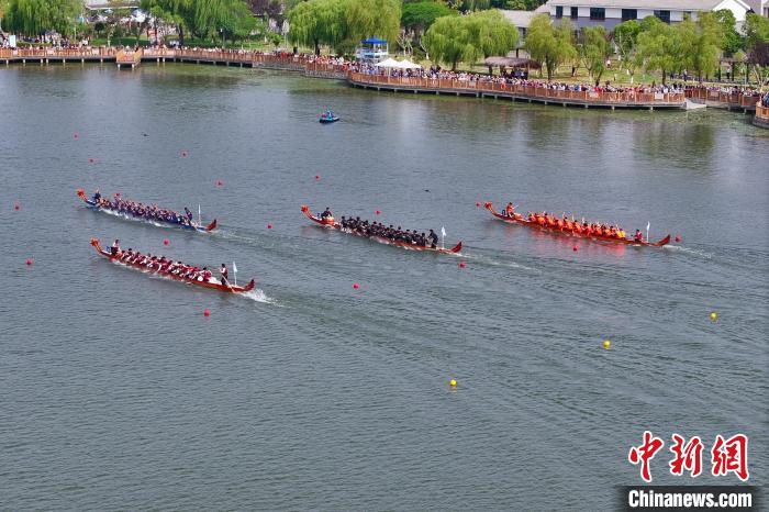 扬州5月18日电 (朱晓颖 崔佳明)18日,“大运河文化带”2025年江苏省城市龙舟公开赛在高邮开赛,逾400名选手在清水潭展开“速度与激情”的比拚。