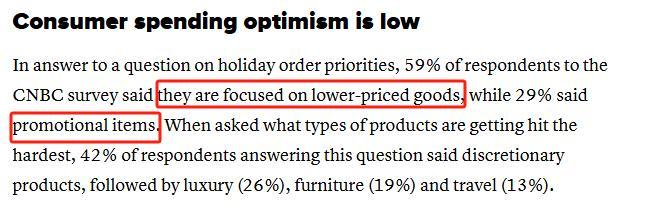 文章认为,这体现了受访者们对经济衰退、消费者支出下降的担忧。而当被问及是否认为消费者支出会下降时,75%的受访者的回答为“是”,甚至有53%的受访者认为这种下降已经开始。