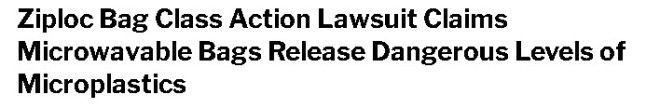 原告琳达·切斯洛(Linda Cheslow)声称,S.C. Johnson公司虚假宣传其Ziploc塑料袋和保鲜盒可微波、可冷冻,但这些产品采用聚乙烯和聚丙烯材料制成,在微波加热或冷冻时可能释放微塑料颗粒。