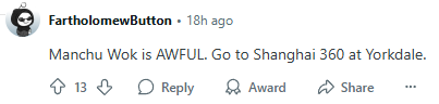 一些有经验的网友表示:“Manchu Wok不行,还得是Yorkdale的Shanghai 360。”