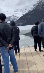 一群印度裔遊客根本不理警告,集體踏上正在化凍的冰湖,結果——“咔嚓、咔嚓”,冰面破裂,至少有兩人掉進了湖水裡!