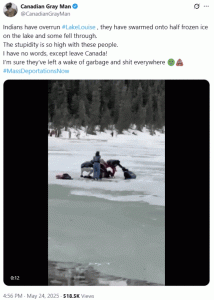 這些人真是太愚蠢了。我已經無話可說,只想離開加拿大!我敢肯定,他們到處都留下了垃圾和屎糞便🤢💩# MassDeportationsNow。”