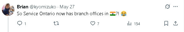 “Service Ontario现在开到印度了?”