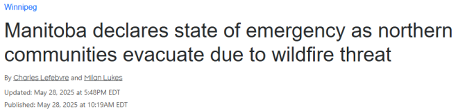 曼尼托巴省省长瓦布·基纽(Wab Kinew)表示,由于野火肆虐,主要集中在偏远的北部地区,他于周三晚间宣布全省进入紧急状态,多个社区和原住民部落的1.7万人已被疏散。