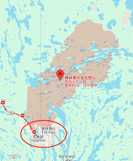 周三下午晚些时候,克雷顿镇也发布了单独的疏散通知。该地区与曼尼托巴省的弗林弗伦市相连,均受到野火影响。
