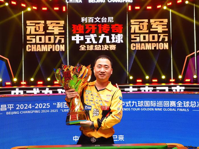 北京6月1日电 5月31日晚,2024-2025“利百文台尼”独牙传奇中式九球国际巡回赛全球总决赛在北京昌平蓝宝石赛场落下帷幕,两位中国名将“终结者”周龙与“楚霸王”楚秉杰在决赛中上演巅峰对决。最终楚秉杰以以6大金9小金176:61超分战胜周龙,加冕全球首位中式九球“500万冠军先生”,亲手捧起象征中式九球顶级荣誉、重达14.5公斤的荆棘王冠奖杯。
