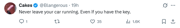 有网友提醒说:“永远不要在车发动的时候离开车,即使车钥匙在你手里。”