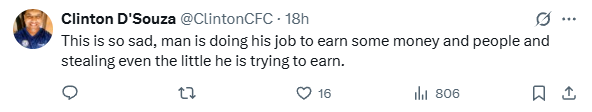 对此,网友表示:“这太难过了!这个小哥在打工赚钱…却还被偷走了他正努力赚到的那么一点点。”