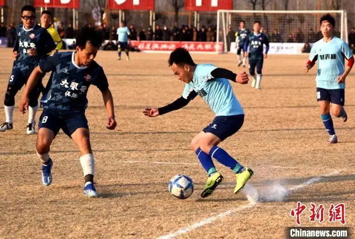 江苏沛县“村界杯”球员激烈抢球。朱志庚 摄