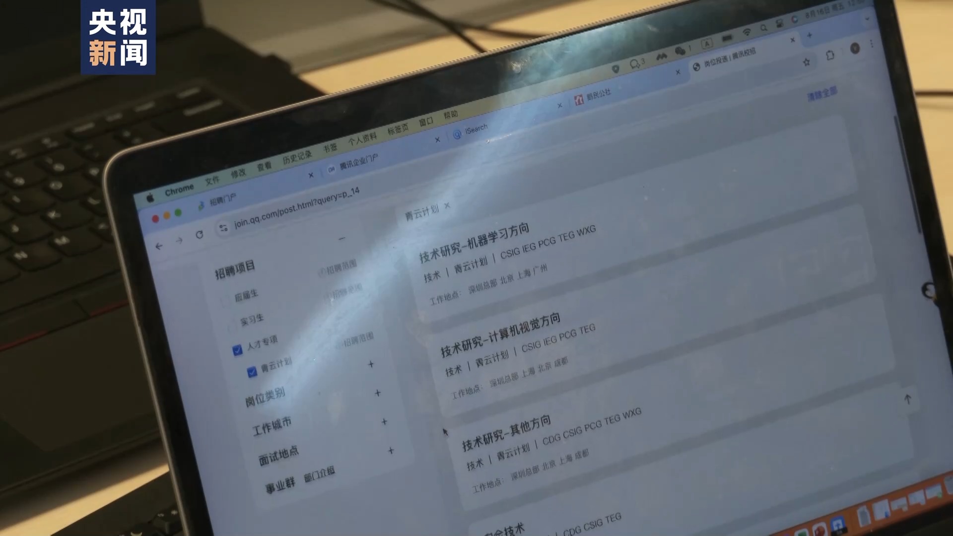 腾讯全球招聘负责人 罗海波:今年扩招的实习生,60%以上是科技类的人才,也就是跟计算机相关的。今年尤其是大模型的发展,我们对科技类人才的需求更为旺盛。我们现在在招的岗位当中,像大模型、云计算、大数据等方向的需求是占比最多的。