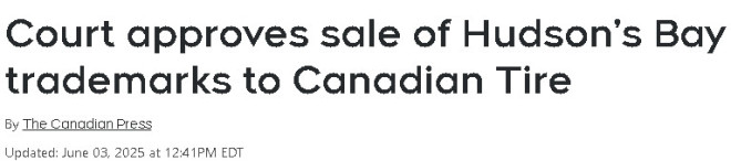 加拿大轮胎公司收购哈德逊湾商标,法院正式批准交易