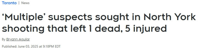多伦多警方和急救人员表示,周二晚间在Lawrence Heights社区发生事件,导致六人被送往医院,其中一名男子死亡。警方表示,正在寻找多名嫌疑人。