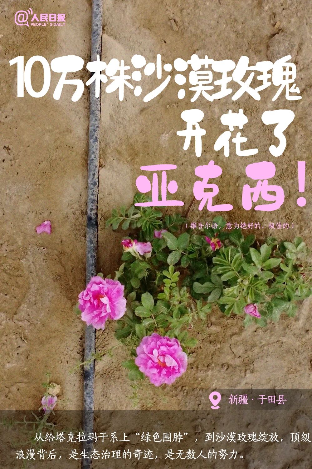 沙漠中,玫瑰花迎风盛放