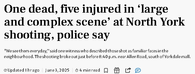 另一位不愿具名的女子表示,她当时正从Yorkdale地铁站走回家,枪击发生几分钟后,她就遇到了三名受害者。“有人大喊:‘快进去!’”