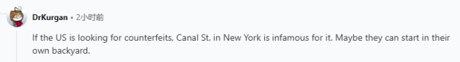 “如果美国要打假,纽约的运河街是出了名的。也许他们可以从自己的后院开始。”