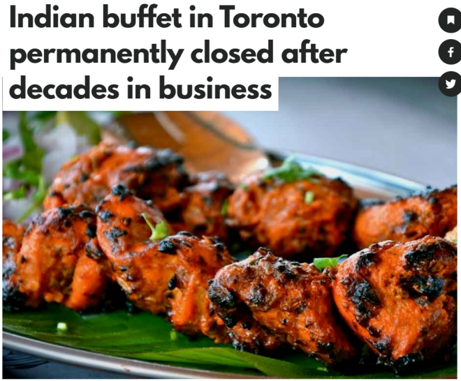 据blogTO报道,多伦多40年历史的老牌印度自助餐厅Bombay Palace近日正式关闭其位于71 Jarvis St.的门店,未作任何官方通知。