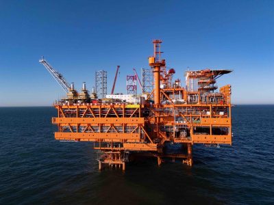 墾利10-2油田群開發項目(一期)中心處理平台完成安裝。張樂 攝