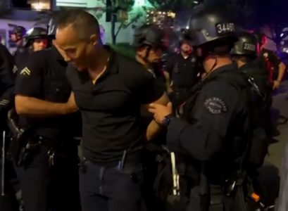 CNN稱,抗議者向警察投擲了煙花、石塊等物品,執法人員則發射橡皮子彈和閃光彈來驅散抗議人群。飛行數據平台Flightradar24的數據還顯示,當地警方的直升機9日全天在抗議區上空盤旋。當地時間9日晚間,洛杉磯警察開始逮捕拒絕離開現場的抗議者。