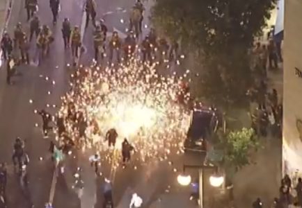 美國執法人員驅散洛杉磯抗議人群 視頻截圖