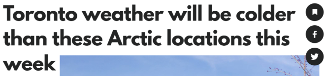 气象专家指出,多伦多将在数日内成为全国最寒冷的地区之一,“到周五时,气温甚至可能比北极圈还低。”