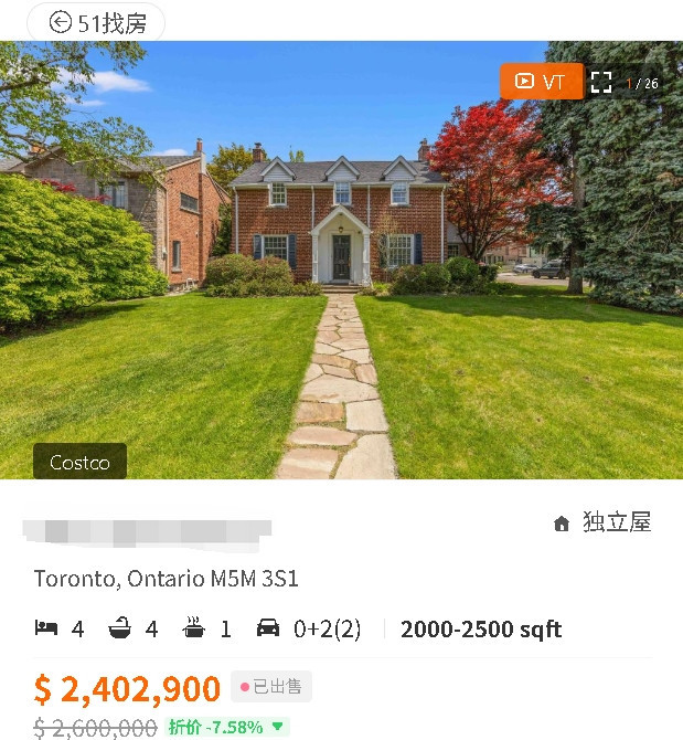 近日,一位知名博主注意到,在Yonge街以东,401高速以南的Bedford Park社区,一套独立屋以240万元成交。这套房在今年1月的交易价是272万元,也就是说,仅仅4个月,房主就亏了32万元。如果加上交易成本和税费,亏损金额接近50万元。回看这套房的历史成交数据,你会发现,它已经跌回到2016年的成交价格区间。