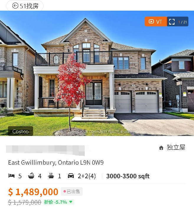在约克区东贵林的新社区,一套不满5年新的双车库独立屋在市场上挂牌4个月后,近日终于以148.9万元成交。这与2年前的成交价相比,跌了36万元。