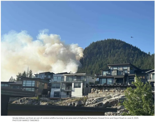 据当地媒体报道,6月9日周一下午,BC省斯阔米什市(Squamish)爆发失控山火,16处房产紧急撤离警报拉响!这场突如其来的灾难让整个社区陷入一片紧张。