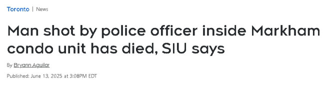 安省特别调查组(SIU)通报称,本周在市一栋公寓内被警方开中的男子,已于周五早晨在医院不治身亡。