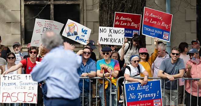 此次抗议活动的发起者是一个名为“No Kings”的组织。该组织的口号明确而激烈:“在美国,没有王座,没有王冠,没有国王。”