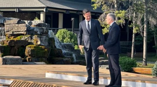 周二早上峰會召開之前,北約秘書長呂特(上圖左)與卡尼舉行雙邊會談。