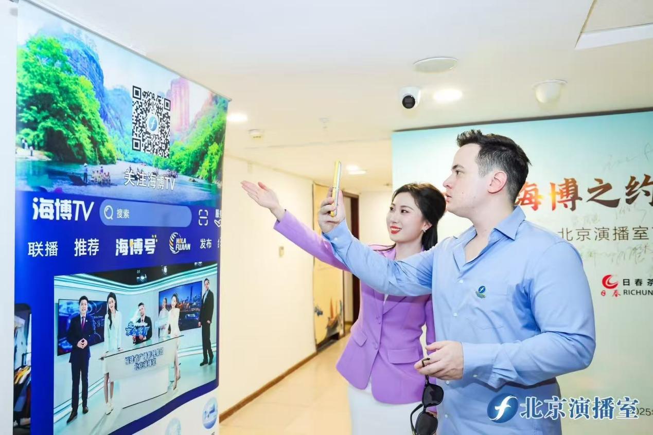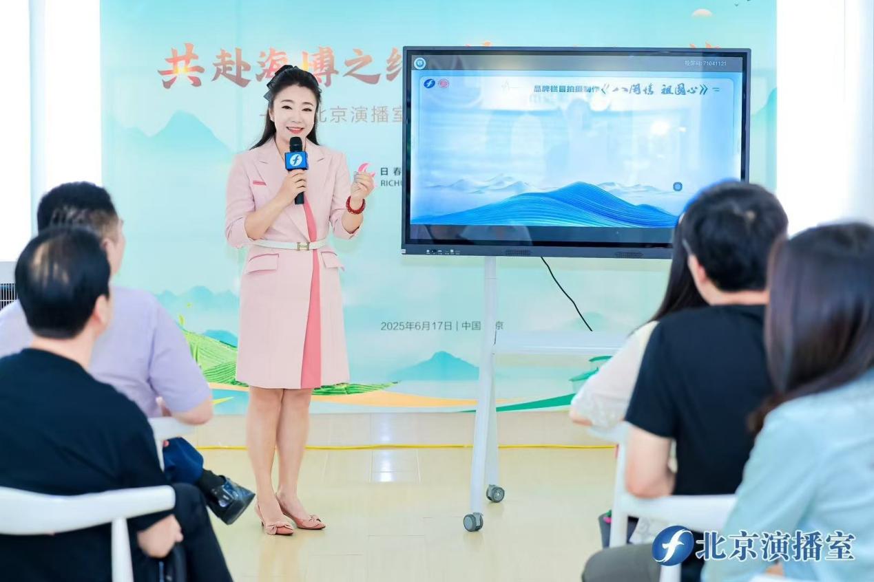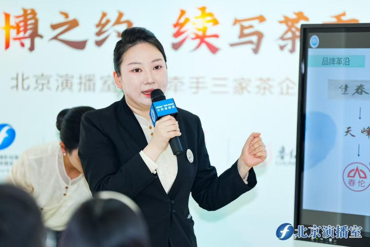 北京演播室项目议事专班成员李珊珊向现场的嘉宾推介海博Tv,此次合作将借助平台优势,全方位展示福建茶文化的魅力,诚挚邀请各界人士共赴海博之约,一同感受闽茶的独特韵味。