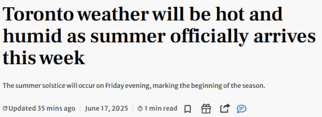多伦多本周正式入夏,预计将迎来持续的炎热和潮湿。