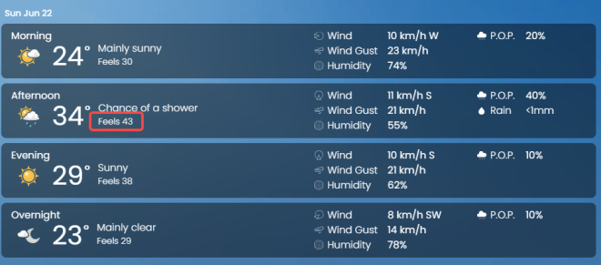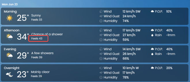 尽管天气阴沉,但根据加拿大环境部的预报,本周多伦多白天气温大多将徘徊在20多°C到30°C之间,湿度让气温感觉更高,周末体感温度高达43°C,开启桑拿模式。