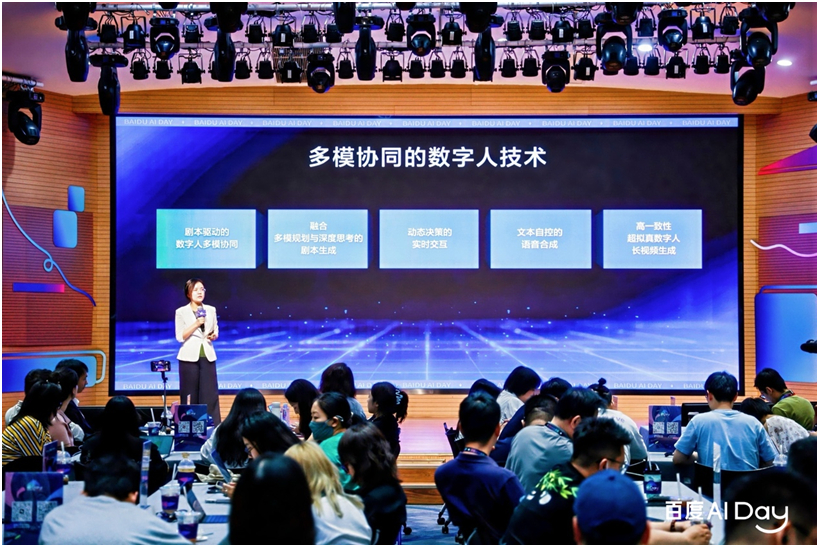 百度集团副总裁吴甜系统性地介绍了多模协同的数字人技术。百度研制的多模协同的数字人技术,基于文心4.5T实现了融合多模规划与深度思考的剧本生成,由剧本驱动数字人多模协同,实现动态决策的实时交互,使数字人的“神、形、音、容、话”达到高度统一。最终呈现出一个具备高表现力,内容吸引人,人-物-场可自由交互的超拟真数字人。