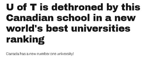 最新出炉的2026年QS世界排名显示,多年来稳居高校首位的多伦多大学,在最新排名中被另一所本国名校反超!
