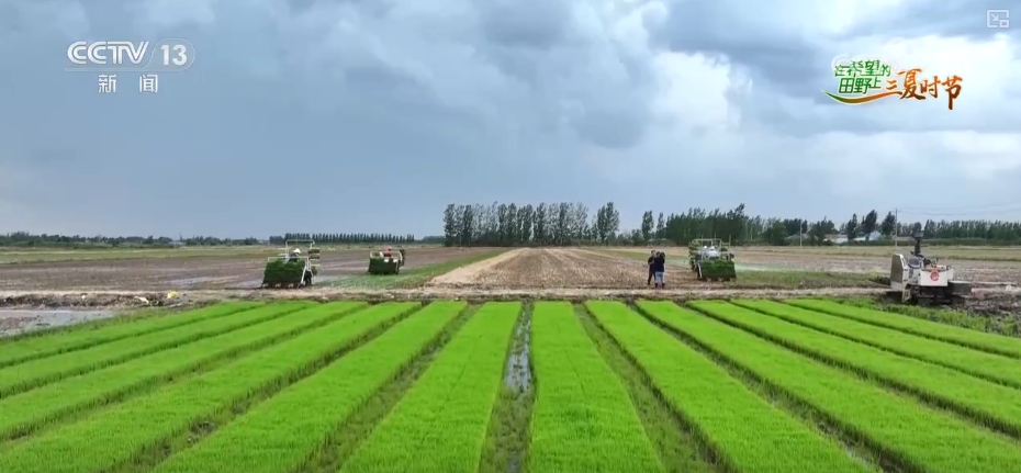 在济宁市鱼台县唐马镇的一处农田里,麦收过后地里依然是一片繁忙景象,大家紧接着就开始进行夏种。和山东大部分地方夏种玉米不同,鱼台县紧靠着广阔的微山湖,水系发达,这里以种水稻为主,也是山东的水稻主产区,面积达到了30万亩,而这里的机械化作业率也达到了99%以上。