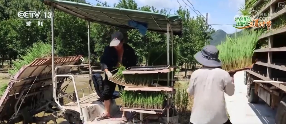 在武义县履坦镇的农田里,农户们忙着将秧苗搬运上插秧机,伴随着轰鸣声,一株株秧苗被插入泥土中。农户介绍,这批种下的单季稻生长周期稳定,只要后续管护到位,预计10月就能收获。
