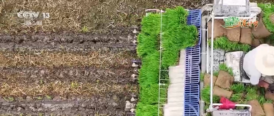 设定好插秧深度、间距这些参数,自动插秧机就能快速精准地把秧苗种到地里。相比传统的人工插秧,机械插秧的效率也大大提高,人工插秧1个人1天插秧最多不超过1亩。而现在,机械插秧1亩地只需15分钟,1台机器1天就能插几十亩地,而且机械插秧更加精确,有利于秧苗后期的返青和管理。同时,它的种植密度也更大,在这里1亩地能种到10万棵秧苗,相应的产量也就会更高。