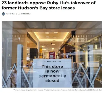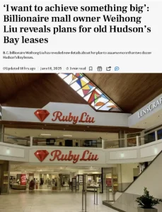 在這28個租約中,有三個與她本人擁有的購物中心有關,即位於溫哥華南部的Tsawwassen Mills、維多利亞的Mayfair Shopping Cntre、以及納奈莫的Woodgrove Centre。其餘門店租約仍需房東同意和法院批准。