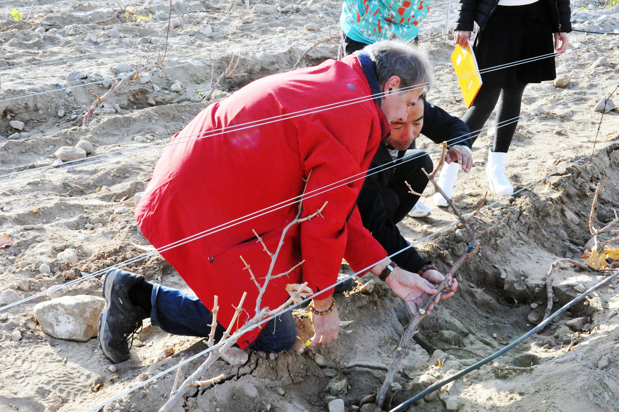 工作人员种植葡萄(央广网发 源石酒庄供图)