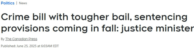 弗雷泽是在5月大选后由总理马克·卡尼(Mark Carney)任命为司法部长的。当时,保守党党魁博励治(Pierre Poilievre)将全国暴力犯罪上升的现象归咎于自由党执政期间“对犯罪过于宽松”。在竞选中,自由党则承诺,将针对以下罪行提高保释门槛: