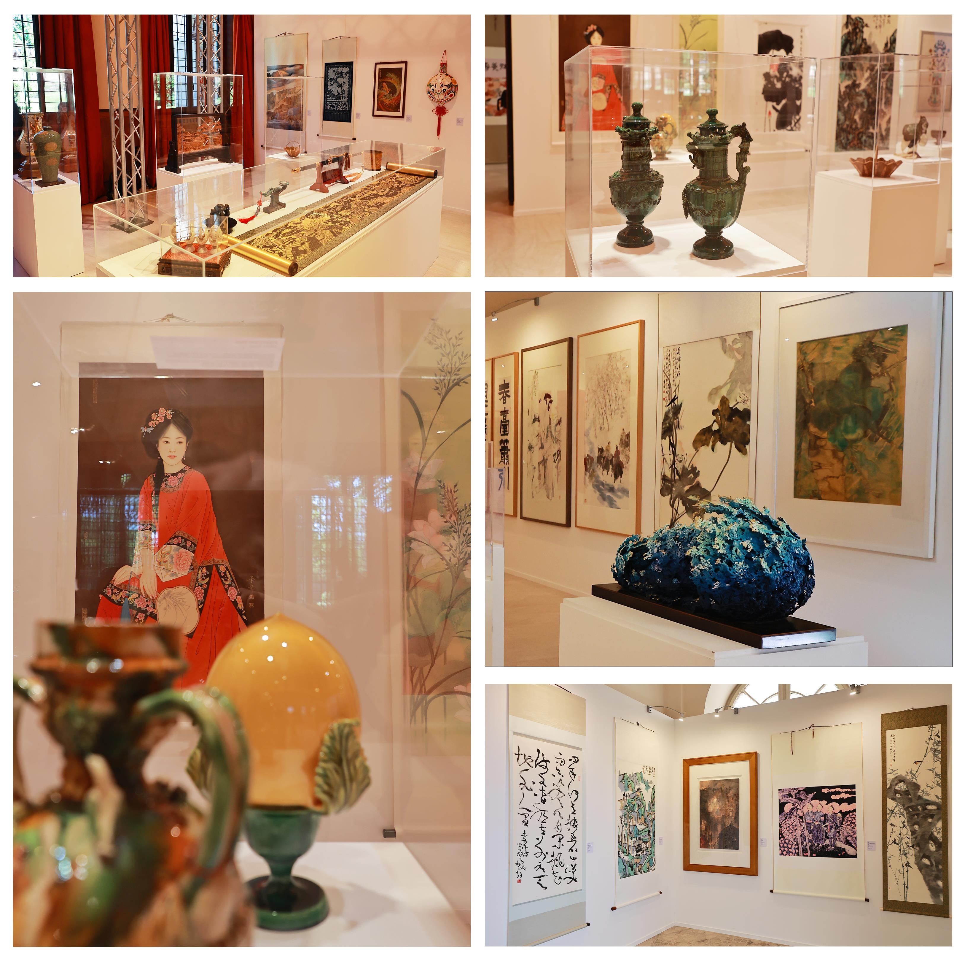 艺术特展由清华大学美术学院教授、敦煌艺术和工艺美术设计研究专家常沙娜担任荣誉总顾问,展出来自100多位中国当代书画名家、非物质文化遗产代表性传承人及工艺美术大师的200余件精品佳作,以及意大利人类文明博物馆珍藏的百余件意大利艺术作品。中国全国政协副秘书长、民盟中央专职副主席、中国美术馆馆长吴为山,书画家、鉴藏家、中国艺术研究院博士生导师、故宫学院中国画研究院院长崔如琢分别为特展作序。展品聚焦两国文化的独特性与共通性,包括书画、景泰蓝、竹刻、刺绣、云锦、玉雕、剪纸等中华传统技艺,以及意大利传统服饰、陶器、铜器等珍贵文物艺术品,彰显开放包容、多元共存的文明理念,构筑跨越山海、沟通民心的友谊之桥。