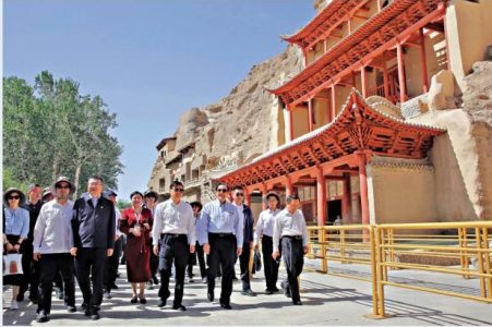 圖:馬英九一行26日參觀甘肅敦煌莫高窟。