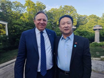 戴玉明出席魁北克省省慶招待會 发布: 2025-06-27 省長勒高與戴玉明總領事在場合照 【時報訊】6月18日,戴玉明總領事赴魁北克城出席魁省省慶招待會。魁省省長、各級政府官員、魁省工商界代表及各國駐加、駐魁使節等出席活動。 戴總領事與省長勒高、國關廳廳長比龍等寒暄交流,雙方均認為應加強對話交流,促進魁方與中方務實合作,實現互利共贏。 免责声明:本文仅代表作者个人观点,与华侨网无关联。其原创性及文中陈诉内容未经本网证实,对本文内容、文字的完整、真实性,以及时效性本网部作任何承诺,请读者自行核实相关内容。如发现稿件侵权,或作者无意愿在华侨网发布文章,请版权拥有者通知华侨网处理。